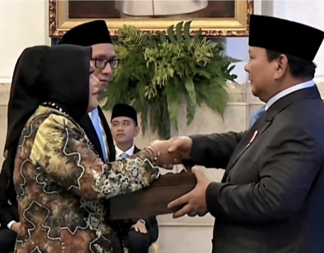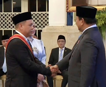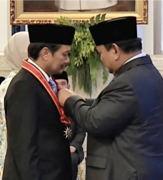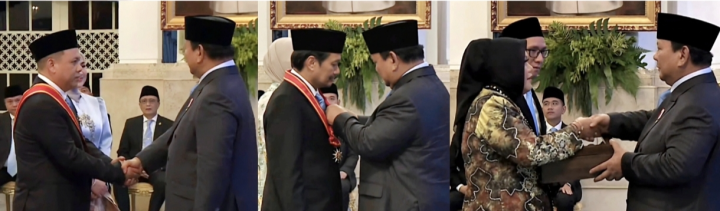 Penghargaan Bintang Mahaputera Pratama yang diberikan kepada almarhum Abdussamad Sulaiman yang diberikan Presiden RI Prabowo Subianto diterima oleh sang anak yakni Hasnuryadi Sulaiman didampingi istri drg Ellyana Trisya Hasnuryadi.