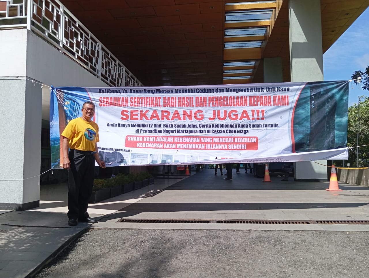 “Kami mengadakan aksi damai di tempat kami sendiri. Gedung ini milik kami. Kami hanya meminta keadilan dan menghentikan praktik ilegal di properti kami,” ungkap Kaharjo.