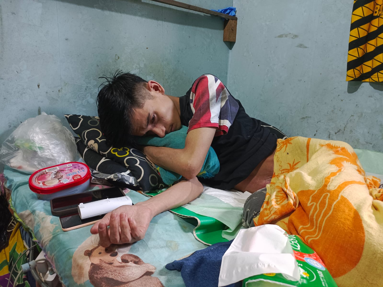 Kondisi itu membuat berat badannya terus turun,kini tak lebih dari 38 kilogram. Hampir setiap hari, pria yang akrab disapa Iyi ini menahan nyeri di bagian perutnya dan bergantung pada perawatan sederhana di rumah.
