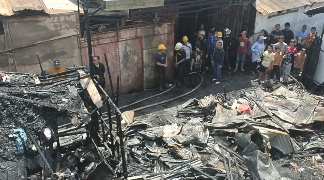 Enam rumah warga di Jalan Teluk Tiram Darat RT 03 RW 01, Kelurahan Telawang, Kecamatan Banjarmasin Barat, ludes dilalap api pada Sabtu (22/11/2025) sekitar pukul 12.45 WITA.(Fauzie)